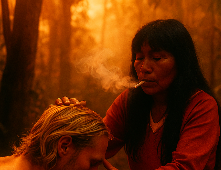 Cet esprit est reconnu pour son rôle de médiateur entre les mondes. Bien que le tabac ne soit pas hallucinogène, il est considéré comme un grand passeur entre l’invisible et le visible : sa fumée transporte les prières, ouvre les perceptions et relie l’âme aux esprits de la nature ou aux entités supérieures. De nombreuses traditions à travers les Amériques (et même en Sibérie) ont reconnu cette fonction essentielle. Dans le curanderisme amazonien, l’esprit du tabac agit différemment selon les formes d’administration – ingestion, fumée, application – suivant le niveau de purification ou d’intégration recherché.